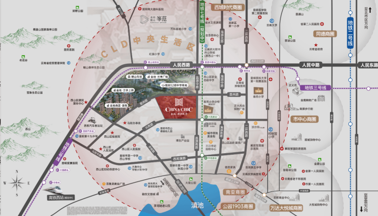 坐标: 昆明西市区中心,紧邻地铁3号线昌源中路站(真正的地铁盘)。