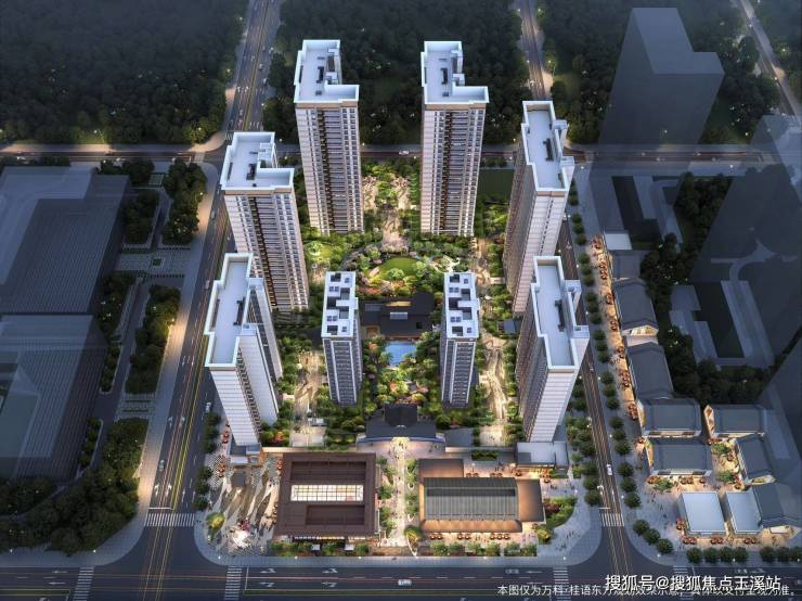 桂语东方构建了高中低错落有致的低密社区,形成阶梯式产品结构,分别为“2 层的低密花园街区+4 栋中式院落小高层+4 栋观滇高层”的组合搭配,将地块容积率、视野发挥到了极致。共 8 栋住宅,项目面积段约为 110-180㎡,商业面积约 2980 ㎡(商业住宅分离设计)