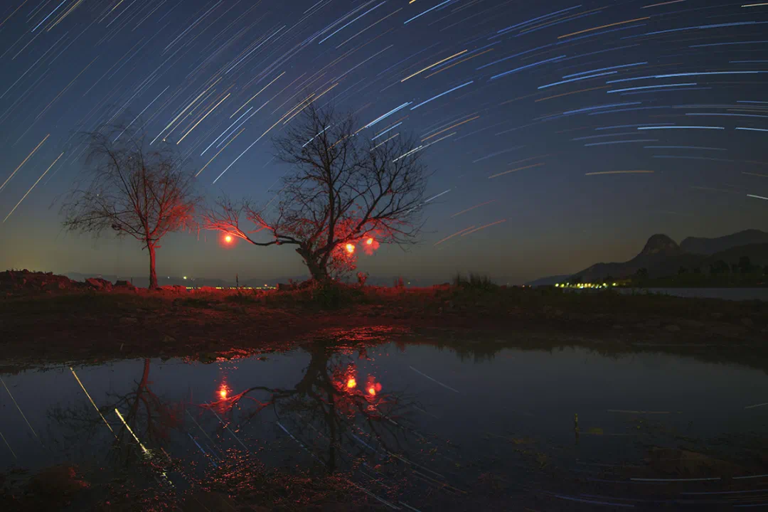云南玉溪抚仙湖,湖水晶莹剔透、清澈见底,是观看流星雨的优质去处,接近北回归线的低纬度、观星范围广、年日照数超300天,通透的环境时刻准备迎接着流星雨的到来。