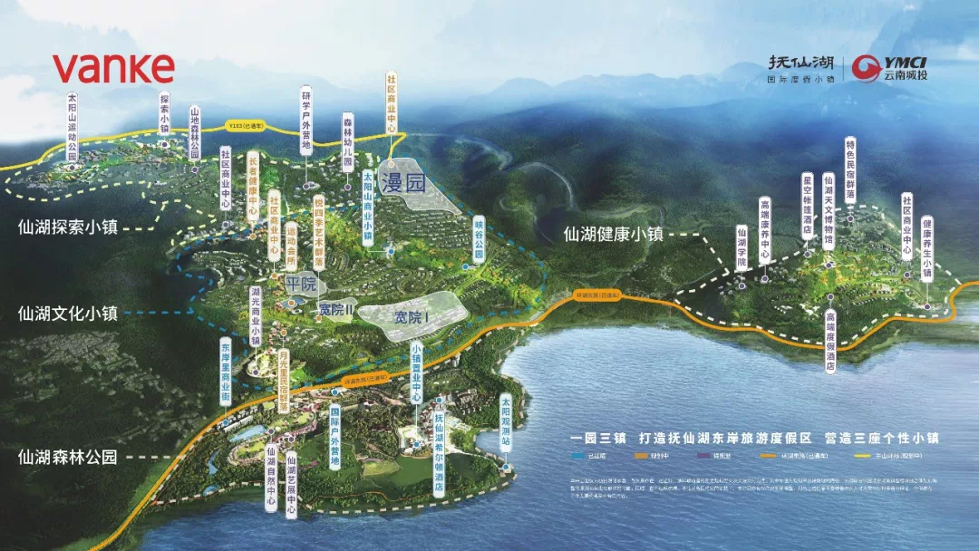 万科能在抚仙湖区域建立一片迷人的度假天堂,最根本的是依托于抚仙湖得天独厚的自然禀赋。万科将以保护自然生态为基础,构建“一园三镇”4大主题地块的整体规划,形成涵盖全维度度假场景,结合度假、文化、运动、康养、会务为一体的大型国际旅游度假小镇。