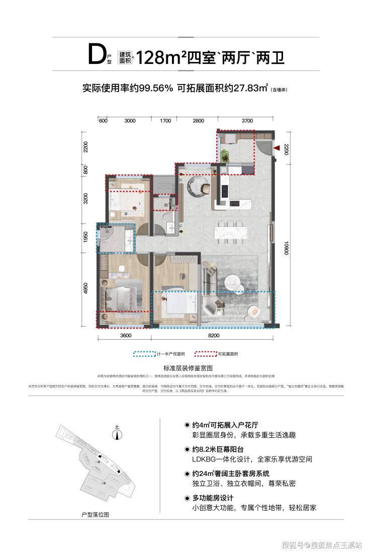 T4——128㎡南北向舒适型四房,使用率约99.56%