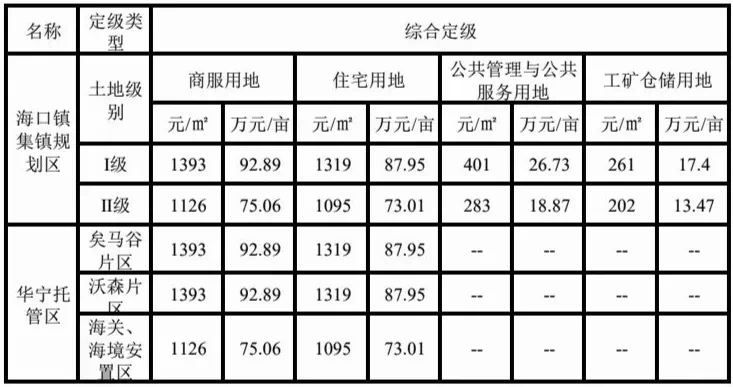 表13 海口镇集镇规划区基准地价测算结果汇总表