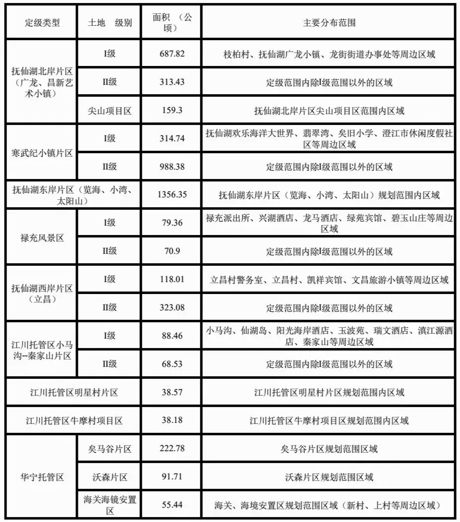 澄江市城市规划区、澄江市抚仙湖沿岸、右所镇、九村镇、海口镇、路居镇集镇规划区及工业园区土地定级与基准地价测算成果通告
