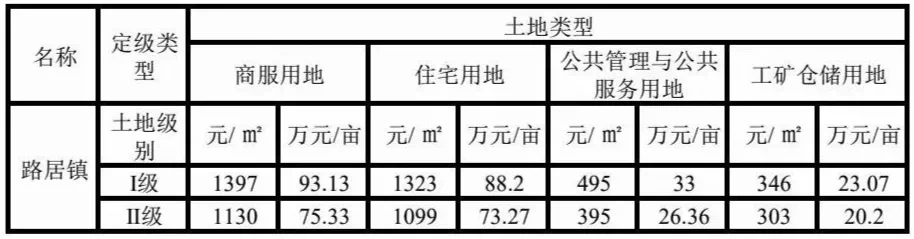 表14 路居镇集镇规划区基准地价测算结果汇总表