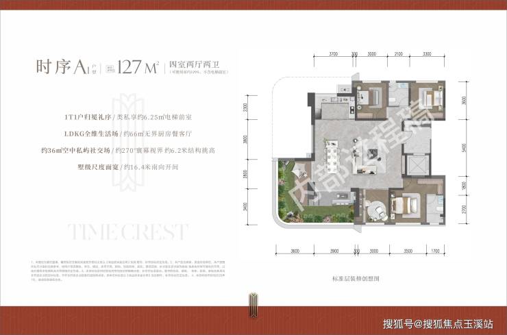 时序A1 建筑面积约127㎡|四室两厅两卫(可使用率约134%,含电梯前室)