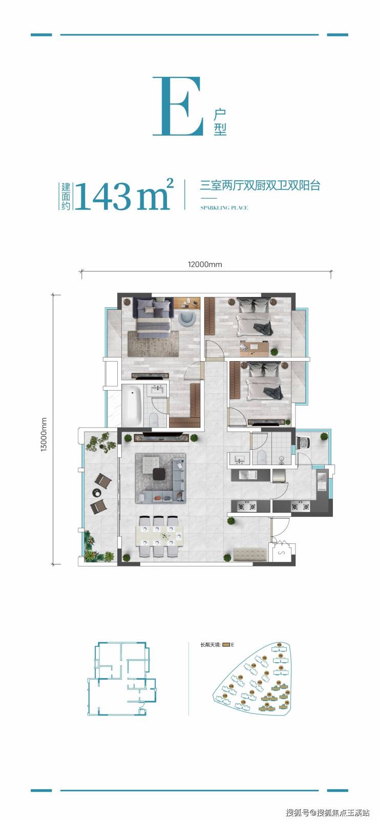 143㎡三房两厅双厨双卫双阳台,层高仅3/4层(带电梯)稀缺产品,约83%得房率,赠送空间高,奢阔超大阳台空间,采光采阳充足,大三房设计,居住舒适度高,主卧豪华套房式设计带独立衣帽空间,双厨房配置烹饪空间更得心应手,厨房直连生活阳台洗晒便利