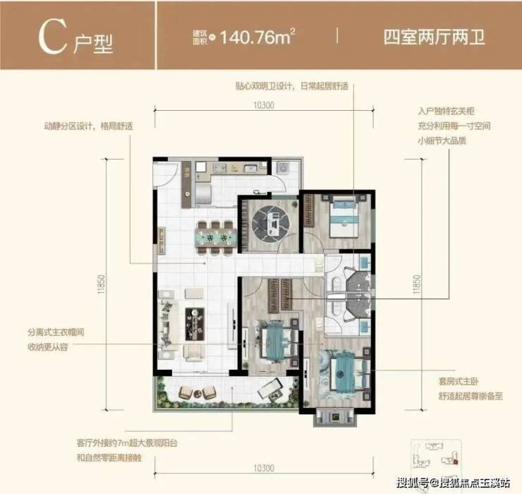各业态建筑面积配比及户数:底商总建筑面积约3554㎡,住宅总建筑面积约137274.15㎡,共1146户。