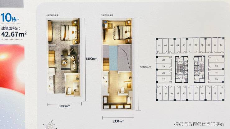 5个样板间(均为42平方),可两套打通做办公,可上下分开投资,可自己居住