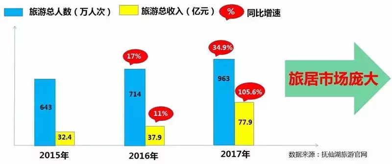 抚仙湖作为国内著名的旅游度假目的地之一。2017年抚仙湖共接待游客963万人次,旅游业总收入77.9亿元。每年千万游客聚集,人流即财富,置业有保障。