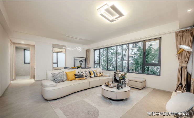 项目的核心竞争力在于“整装交付”体系的持续迭代。此次推出的“严选家3.0”提供现代奶油与现代轻奢两种风格样板间,精装标准达1100元/㎡,并配备全屋家具、家电、智能灯具等,真正实现“拎包入住”。以97㎡南北朝向户型为例,业主可省去约20万元装修费用及180天工期,而89-93%的高得房率进一步放大了空间使用价值。