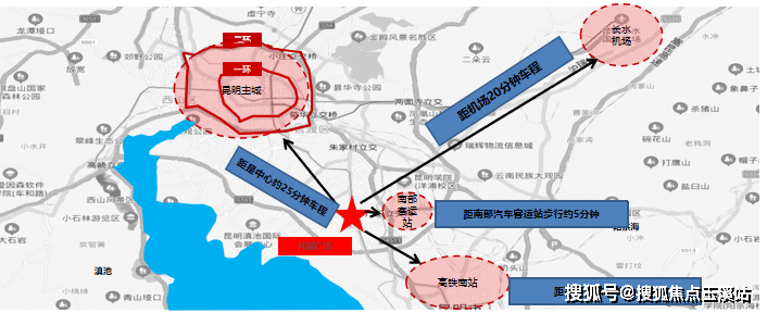 昆明高铁南站,昆明长水国际机场,南部汽车客运站。