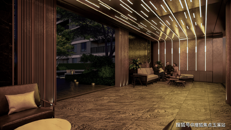 归家路径被重新设计为一场渐入佳境的山水剧场。一境【登云】以12米挑高门庭搭配金属镂空云纹屏风,地面采用黑金沙花岗岩与铜条镶嵌的“青云阶”图案,通过材质碰撞营造平步青云的仪式感。二境【观瀑】突破传统水景尺度,打造7.2米高差的叠瀑系统,利用数控水流技术实现昼夜两种模式——日间呈现三叠玉帘的磅礴气势,夜间则切换为雾森系统配合投影,将李白《望庐山瀑布》诗句动态投射于水幕之上。三境【摘星】的突破性设计在于可交互式廊架,顶部304不锈钢丝编织的“星河”装置内置压力传感系统,行人经过时会触发星光涟漪效果,而地面嵌入的光纤灯模拟银河轨迹,形成天地呼应的奇幻场景。