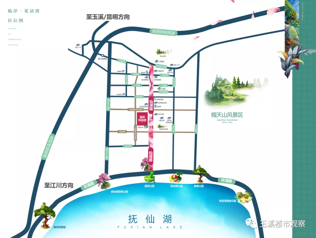 这一项目的开发商是玉溪近业地产,公司成立于2007年,先后开发了多个颇具口碑的项目,如湖畔苑、永兴综合楼、嘉阳商业城,极·中心、临岸三千城等,特别是极·中心,现在是当之无愧的玉溪最繁华的中心级商业区。而临岸三千城不仅仅是玉溪本地的项目标杆,更获得了整个地区的认可,州、县曾多次安排相关组织和机构到这里来参观学习。该公司开发的临岸·花语澄项目位于澄江县青少年宫旁,处于昆明通往抚仙湖、江川的门户位置,外围交通便捷,西临竹园路,北临澄清路,南侧为规划路,东近仙湖路(仙湖路改扩建工程樱花大道)。项目总占地约68.6亩,住宅总户数890 户,共15幢,项目已经全面封顶,目前正在建设相关配套设施,进行项目绿化,预计今年12月20日前交房。