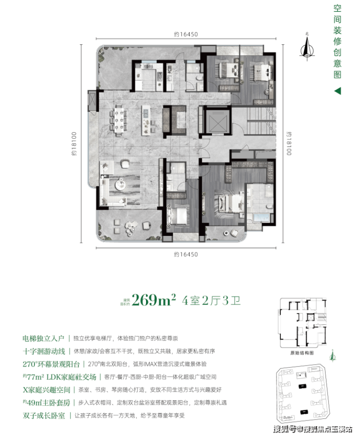 建面约189㎡家庭社交灵动岛 4室2厅3卫