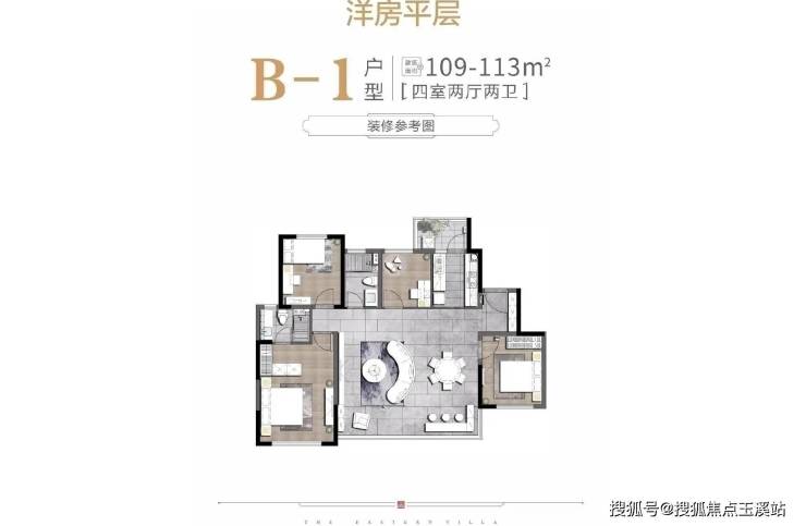 [B-1]建筑面积约110㎡横厅,实得面积约130㎡,优惠后总价约190-210万;