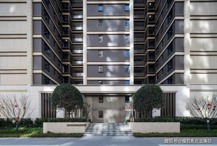 建筑设计采用新中式风格,整体稳重大气、品格高雅。建筑色彩以深灰色和米黄色为主,一洗新中式之冷重,给人以明亮温熹之感。