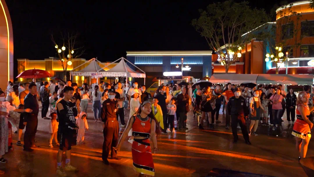 在彩虹广场,马戏欢乐巡游的IP玩偶、马戏演员、高跷小丑、大白熊是孩子们的最爱,外籍小丑、马术互动拍照、近景魔术、魔幻泡泡秀等互动表演吸引了众多游客参与其中,夏威夷草裙舞、激情桑巴、花式呼啦圈、古巴跳绳的轮番上演,更是将整个街区变成了欢乐的海洋。
