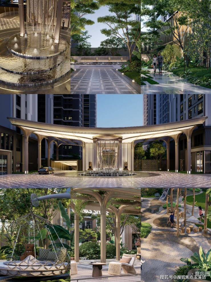 在仅32亩的用地内,景观设计团队创造出3000㎡的中庭花园,绿化率达35%。"东方之礼"三大主题景观带运用"起承转合"的古典园林手法:入口处12米宽的镜面水景与金属格栅形成现代东方门仪;中心区采用云南特有高山榕为主景树,搭配20余种本地植物形成立体植被系统;归家路径上的"月光走廊"通过智能照明系统,再现"月映万川"的意境。这种将地域文化与现代技法融合的景观语言,重新定义了高端社区的审美标准。