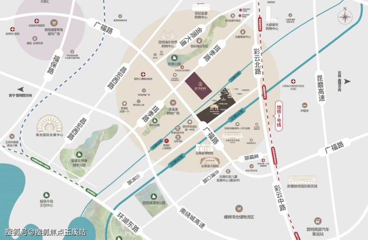 此外,地铁1/2号线、广福路、珥季路、彩云北路、昆玉高速、杭瑞高速等三维立体路网覆盖,全城随心畅达。