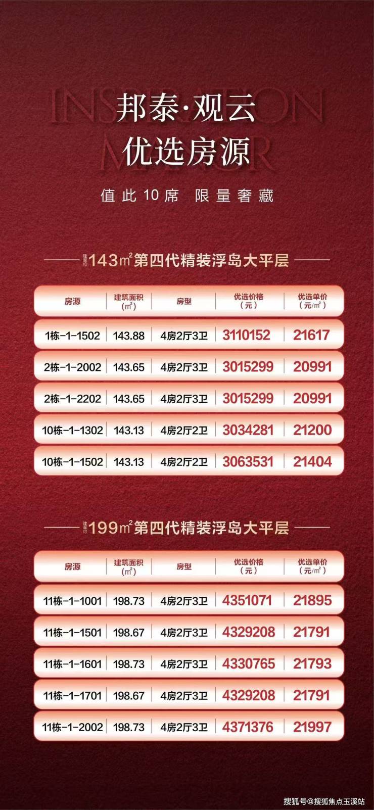 邦泰观云朗月建面约143-199㎡第四代精装浮岛大平层
