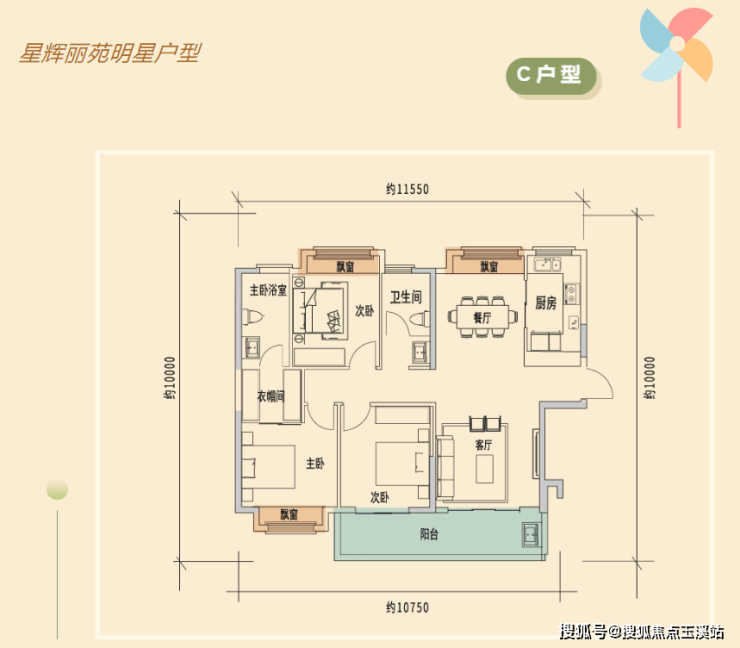 1、三面宽朝南设计:客厅、主卧、次卧均为南向,阳光充足;