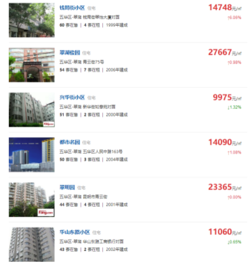 滇池路片区开发高潮出现在2000年到2008年之间。之后,随着周边可开发土地资源不断减少,滇池路片区的房价也一路飙升,目前基本在20000元/平左右,入住滇池路片区变得难上加难。