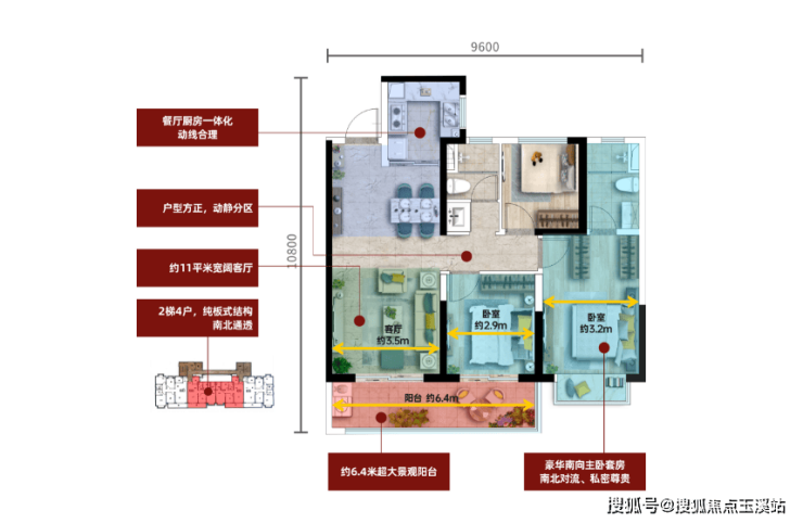 101㎡户型:动静分区,清风对流通透,动线合理,无多余面积浪费
