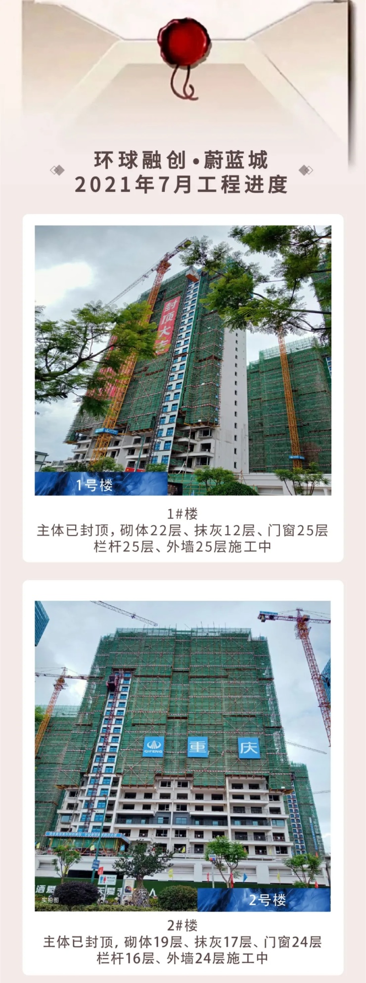 云南抚仙湖环球融创·蔚蓝城2021年7月较新工程进度