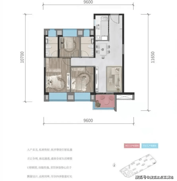 A户型95㎡,三室两厅两卫