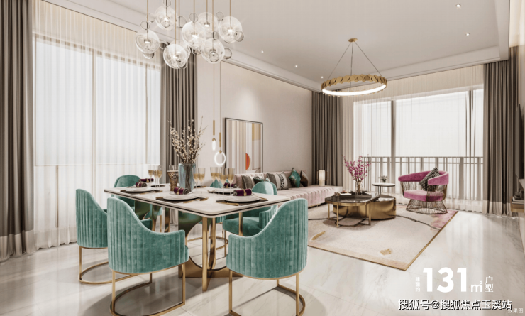 户型方正,动静分区,全景玻璃幕墙,主卧套房设计