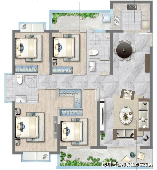 G1户型:建面约136㎡(四室两厅两卫)