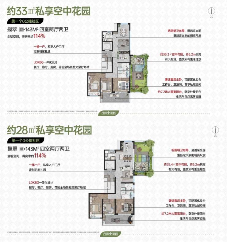 揽翠(143㎡):四室两厅两卫,得房率超101%,适合改善型家庭。