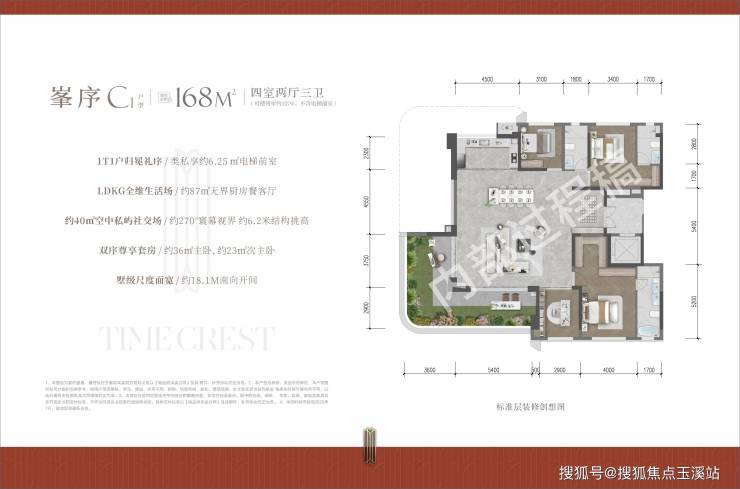 在户型设计上,建面约168㎡的峯序C1户型演绎着空间魔术:南向约18米的面宽采用双套房设计,主卫双台盆与独立衣帽间构成私密闭环;约40㎡的L型空中庭院预设了多重生活场景——从晨间瑜伽平台到星空烧烤区均可自由切换。更值得关注的是邦泰物业的"司雅体系",80余项定制服务中包含罕见的"庭院养护师"岗位,专门解决垂直绿化带来的维护难题。这种从建筑硬件到软性服务的全链条创新,正是其斩获2025年1-5月房企销售TOP14的核心竞争力。