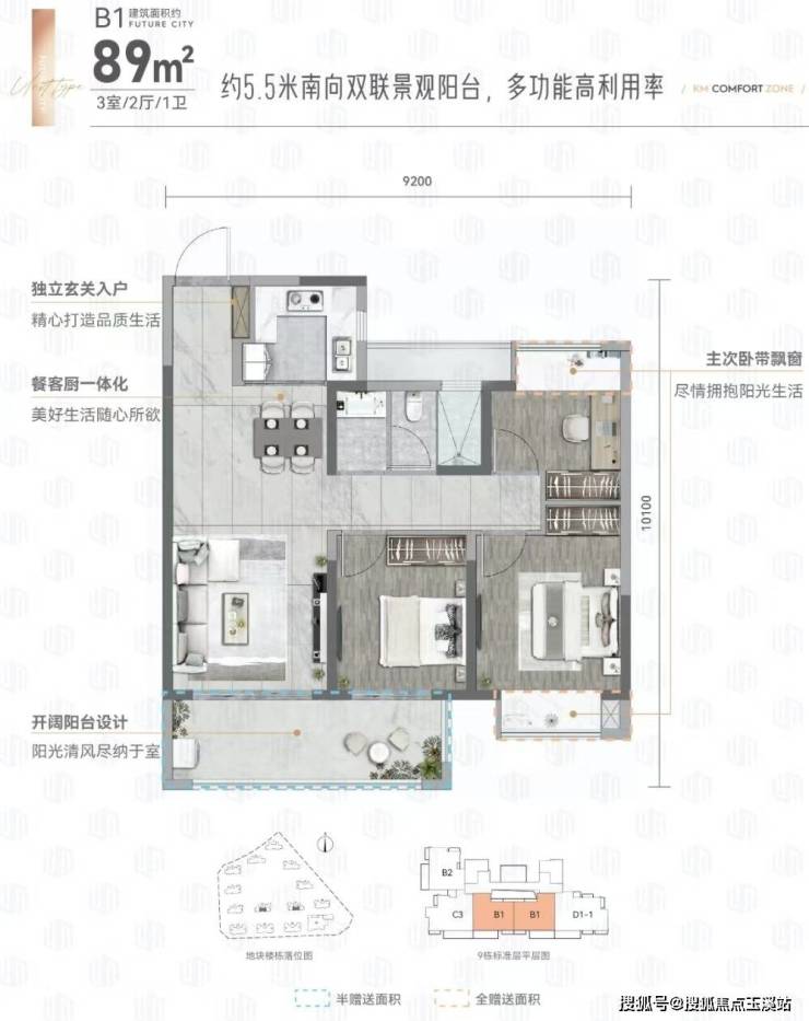 能建未来城深知不同家庭的居住需求,推出建筑面积约78 - 135m²的多元户型,首推户型建筑面积约78 - 108m² ,涵盖两房、三房等多种布局,满足从二人世界到三代同堂的全生命周期置业需求。比如建面约89㎡户型,独立入户玄关,赋予归家满满仪式感;客厅、餐厅、厨房一体化设计,空间开阔,社交、聚会轻松hold住;双联阳台,一半用来打造绿植小天地,一半用于健身、休闲;可拓展飘窗设计,为孩子打造专属小世界 。