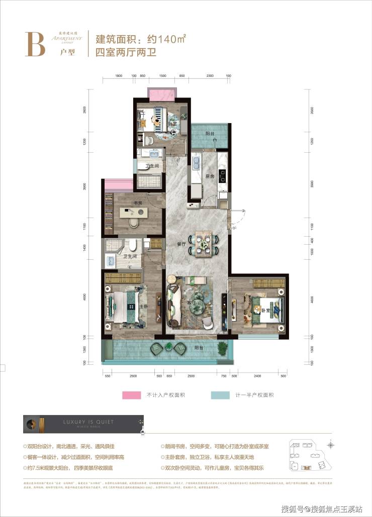 B户型:建面约140㎡,四室两厅两卫