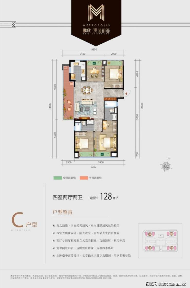 - **128平方米四房**:配置双卫+家政间,主卧套房设计配备独立衣帽区