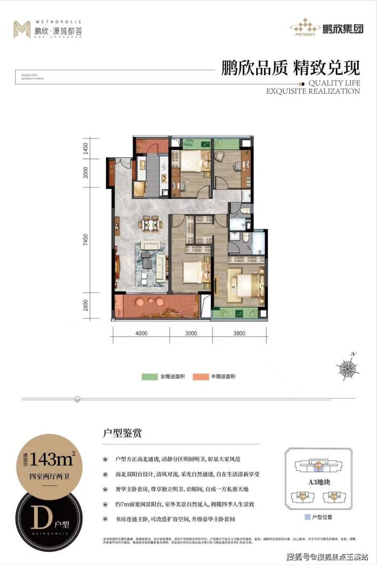 - **143平方米改善户型**:创新性打造LDKB一体化空间,搭配6米宽景观阳台