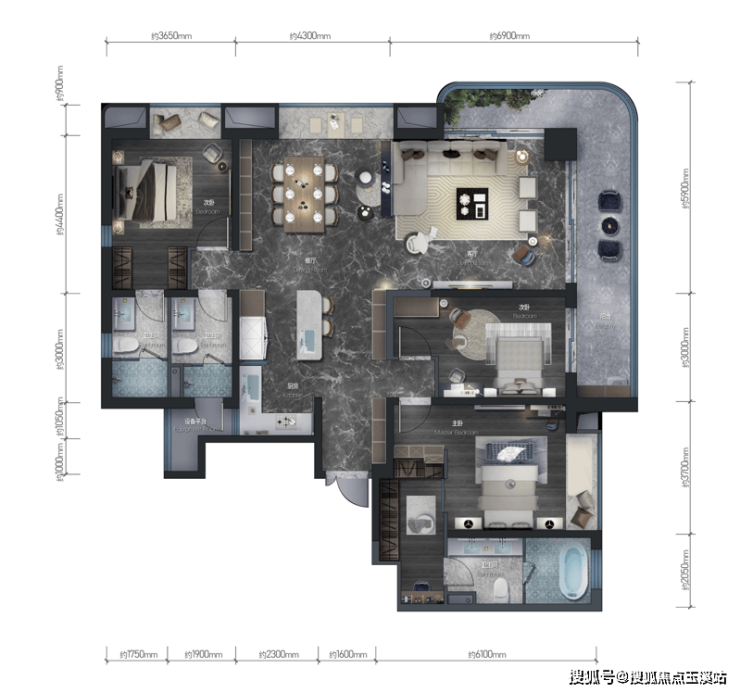 户型设计的精妙之处在于对生活场景的前置思考。130㎡的"大满贯生活家"户型,通过11.3米连贯收纳墙解决家庭储物痛点;144㎡的"楼王视野家"实现100%得房率,南向双阳台设计让阳光洒满每个角落;190㎡的进阶产品则采用酒店式套房设计,三卫配置兼顾多代同住需求。所有户型均遵循"全明采光、干湿分离"的黄金准则,飘窗全赠送、生活阳台全赠送等细节设计,让实用面积远超预期。