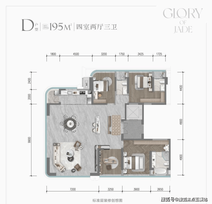 1. 空间革命:D户型195㎡实现102㎡LDKB超级社交厅,通过270°全景舱设计将采光面扩展至17米,配合3.15米层高,形成类别墅的空间体验。创新性的“壁龛式玄关”在143㎡户型中实现4㎡独立收纳区,破解改善型住宅的收纳痛点。