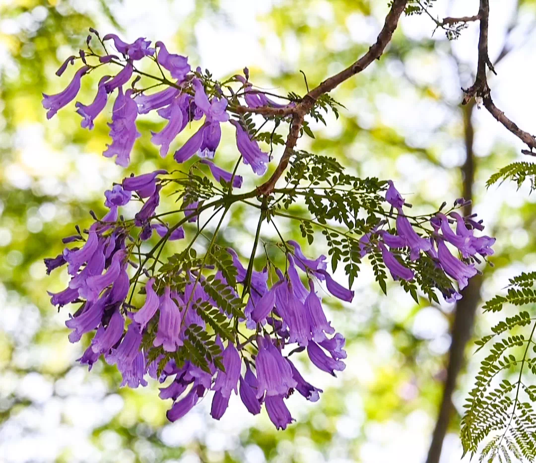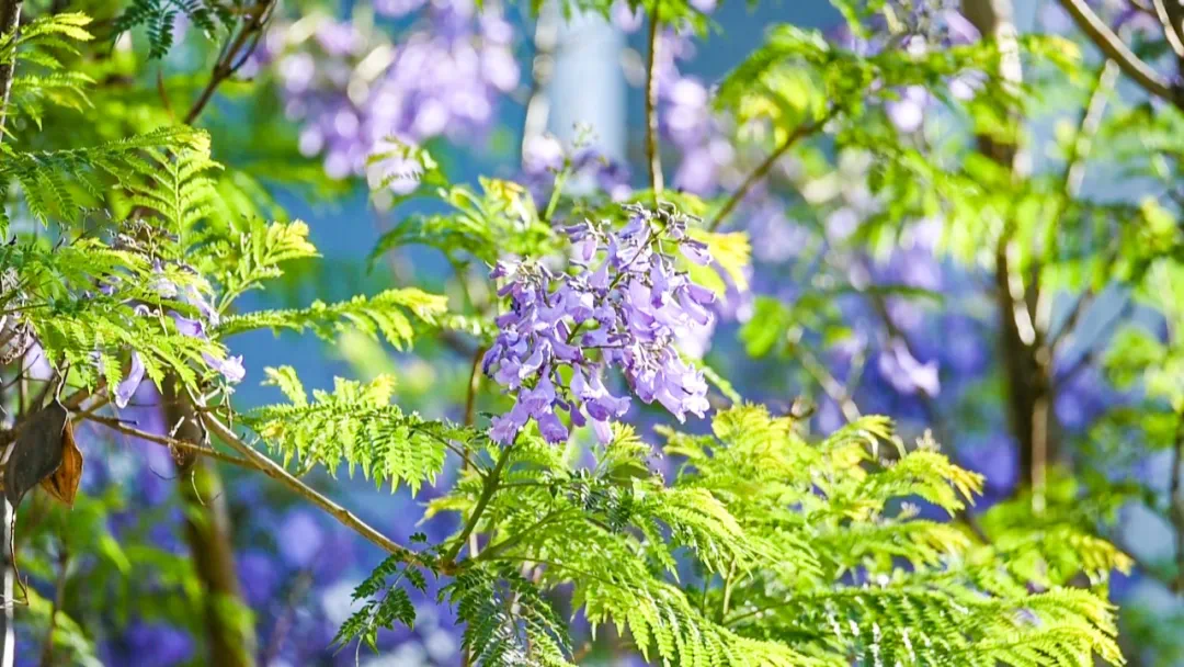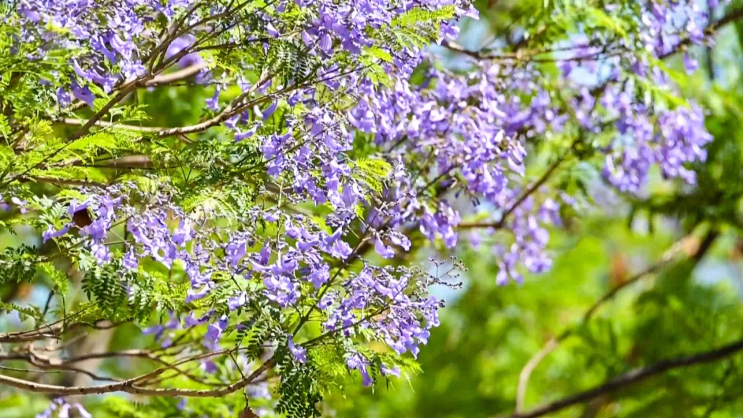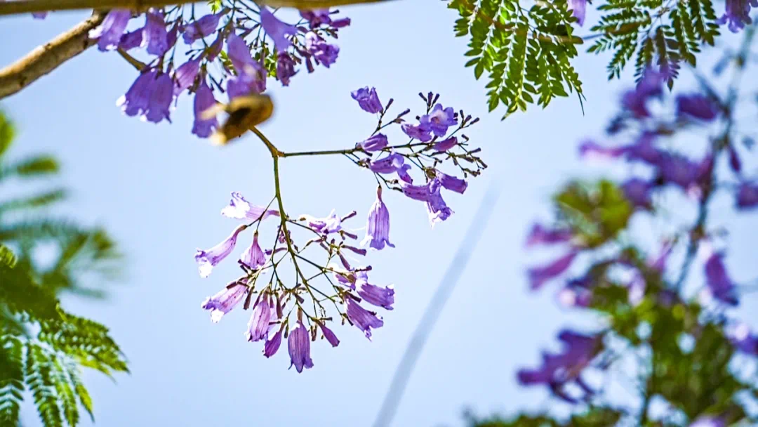紫英轻轻,飘坠悠悠随风飘落的蓝紫色花朵把天和地连成宁静惬意的烟云