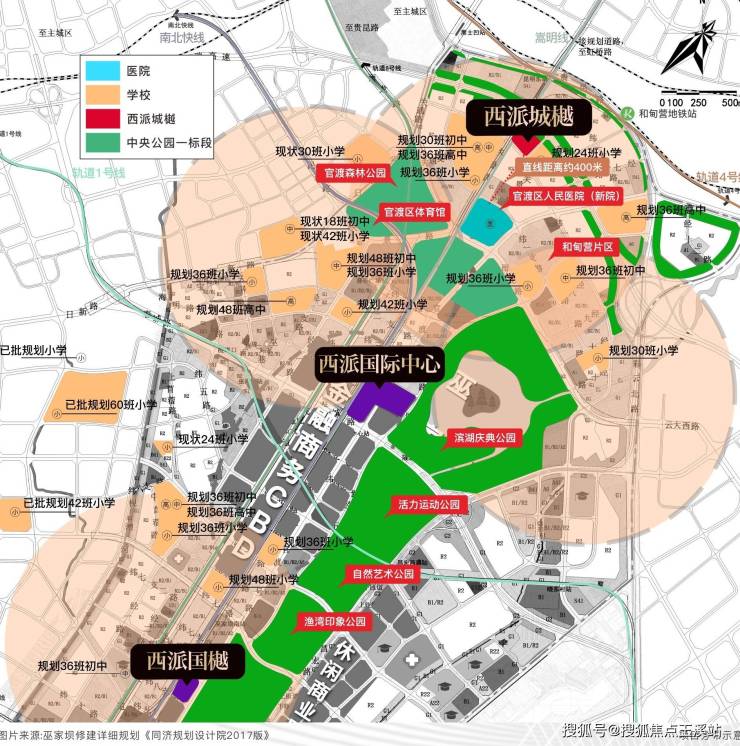 区别于巫家坝CBD的商务属性,国际社区板块以"把空间留给生活"为规划理念。项目周边6宗教育用地形成全龄教育矩阵,东南侧24班小学与家门口的幼儿园构成"教育圈";直达按三甲标准建设的官渡区人民医院新院,13万方龙湖天街商业与地铁4号线和甸营站形成"步行生活圈"。更令人心动的是,推窗可见的5070亩巫家坝中央公园(在建)将老官渡八景融入现代景观设计,实现"公园即客厅"的居住理想。
