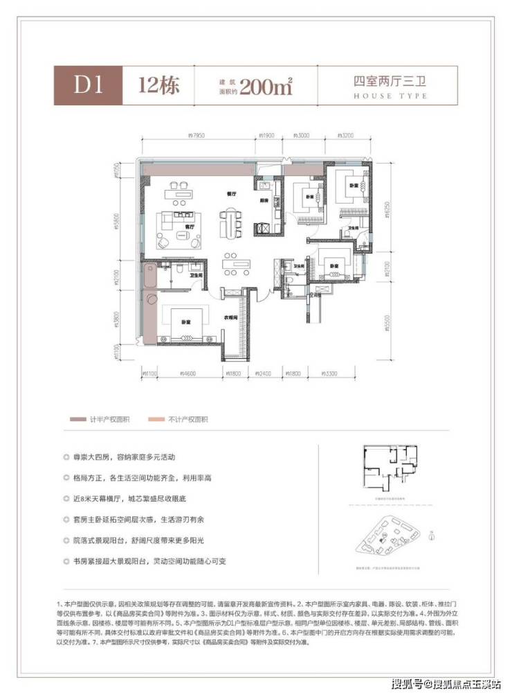 C御境:建面约203㎡ 四房两厅三卫双套房