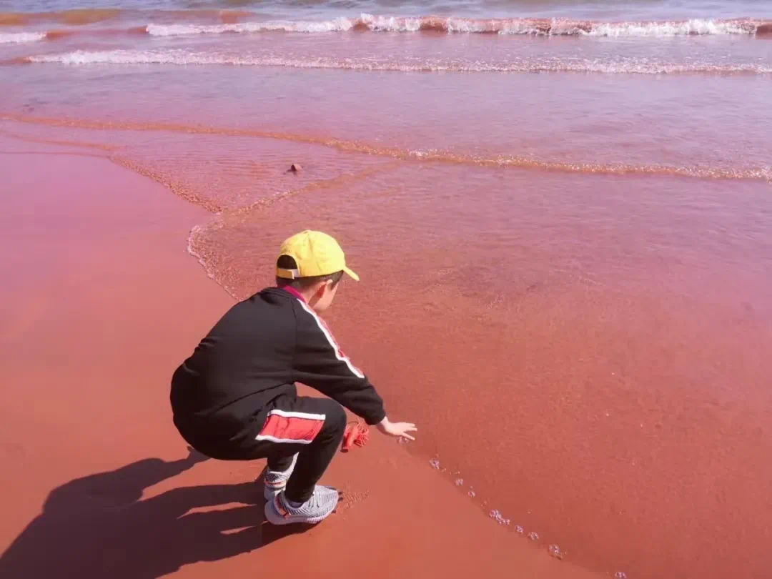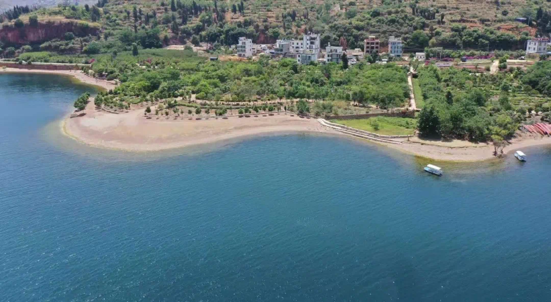 广龙小镇红山咀的粉红色沙滩,是抚仙湖入夏的明显符号。