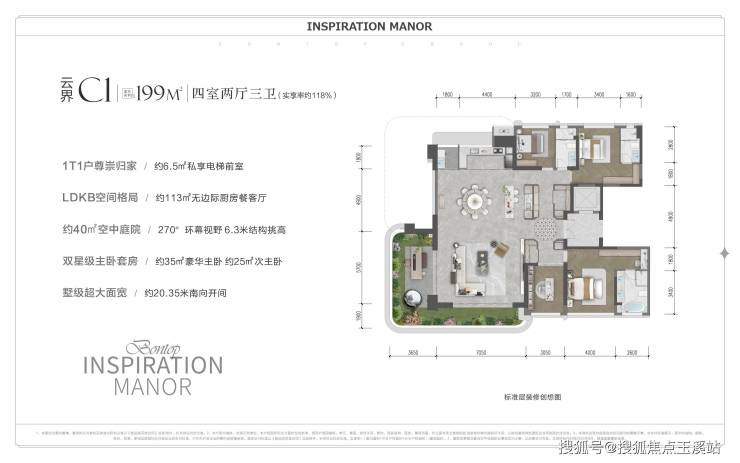 邦泰·观云以“垂直墅院”理念突破传统平层边界。每户约40㎡的空中庭院采用奇偶错层设计,通过隐私挡板实现270°环幕视野与居家私密的平衡。约20米南向面宽、3.3米层高的墅级尺度,配合精装交付的德系厨卫系统、智能家居体系,重构高层住宅的空间价值。尤其建面199㎡户型,通过LDKB一体化设计、双主卧套间配置,实现三代同堂各得其所的奢适体验。