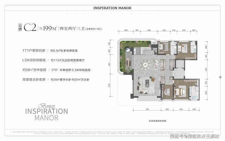 建面约143-199㎡第四代精装浮岛大平层