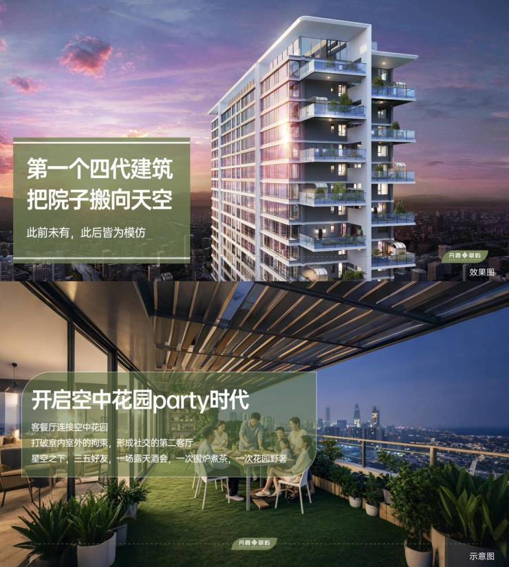 四代住宅:昆明主城首座“第四代建筑”,主打“0公摊”,户户带空中花园与私家庭院,得房率超101%。