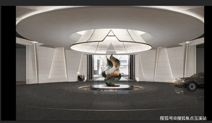 融合毫米级精控技术,参数化几何美学、石材全水刀切割、立体拼接、3D建模仿水波加工等,与时空共鸣的美学图腾。