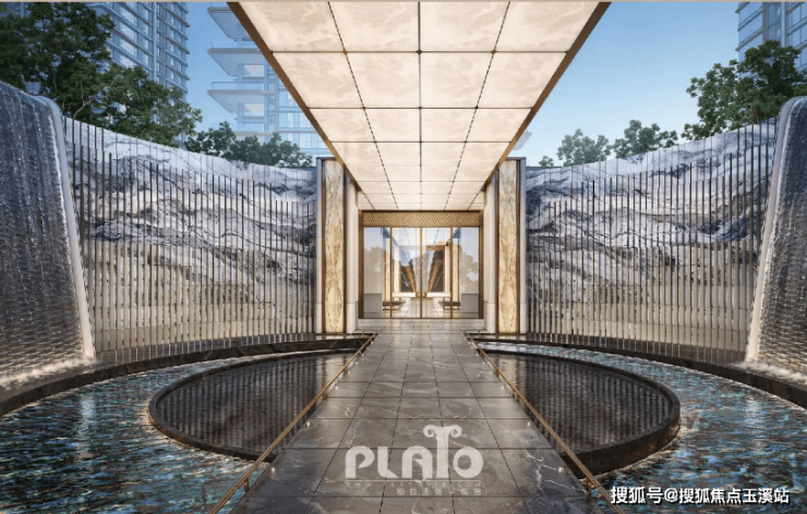 融合毫米级精控技术,参数化几何美学、石材全水刀切割、立体拼接、3D建模仿水波加工等,与时空共鸣的美学图腾。