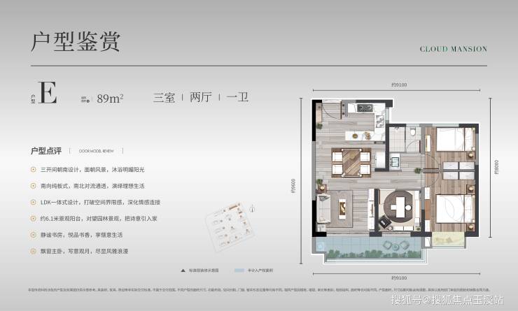 南向三开间面宽,宽大的瞰景阳台,真正实现了超越同面积段产品的居住体验。