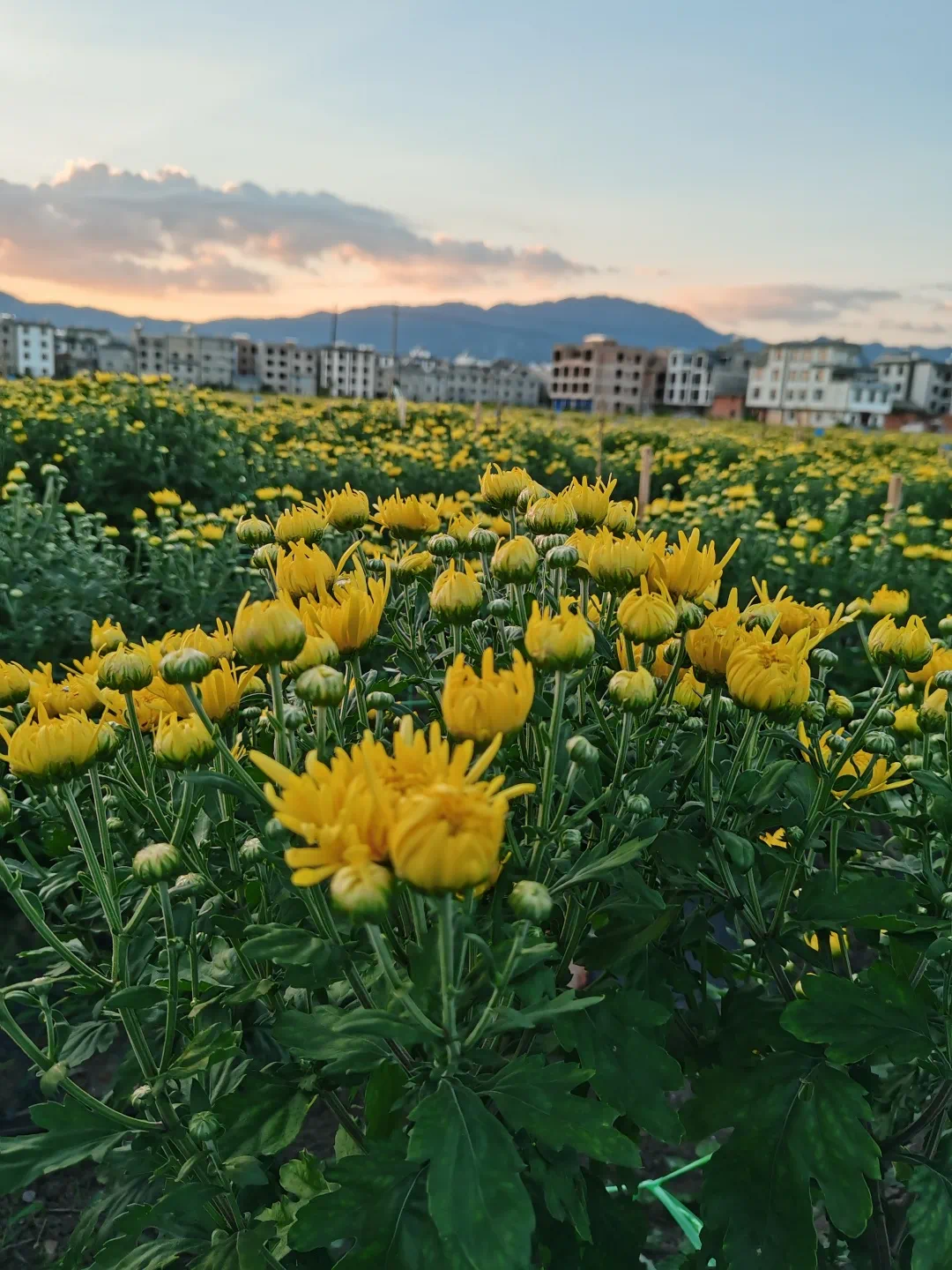 走近龙街街道龙街社区朱官营村菊花种植基地,远远的就能闻到阵阵菊花清香,金色的菊花绽放在田间,一丛丛、一簇簇,延绵成一片炫目的金色花海,扮靓了深秋的田野。